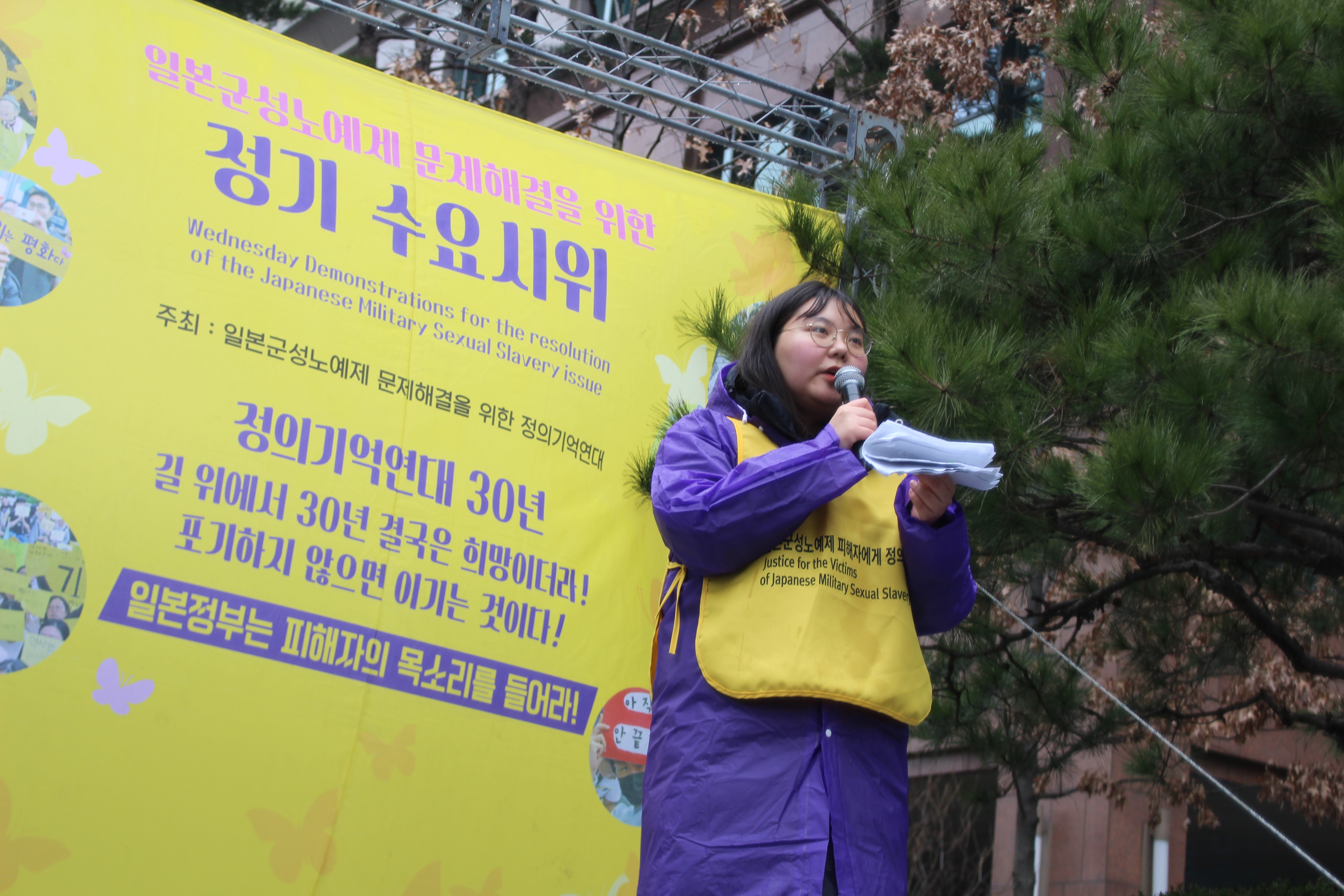 “피해자의 고통에 공감하지 못하는 사람들, 진실을 못 보고 왜곡하는 사람들, 자기들만의 잔치로 끝난다면 문제가 없겠지만, 그것의 면면들은 일본의 우익들, 피해자가 없어졌으면 좋겠다고 생각하는 사람들, 그 정부, 정치인들, 그 사람들에게 힘이 되고 또 그 사람들로부터 힘을 받고 점점 그 힘을 키워나갈 수 있다는 것이 문제이다. 굉장히 가슴 아프지만, 역사가 왜곡되지 않도록 진실이 가려지지 않도록 하는 이 외침, 이 연대를 더 공고히 하고 지속적으로 해야 한다. 오늘 이 자리에 모여 계시는 여러분과 함께 갔으면 좋겠다.”