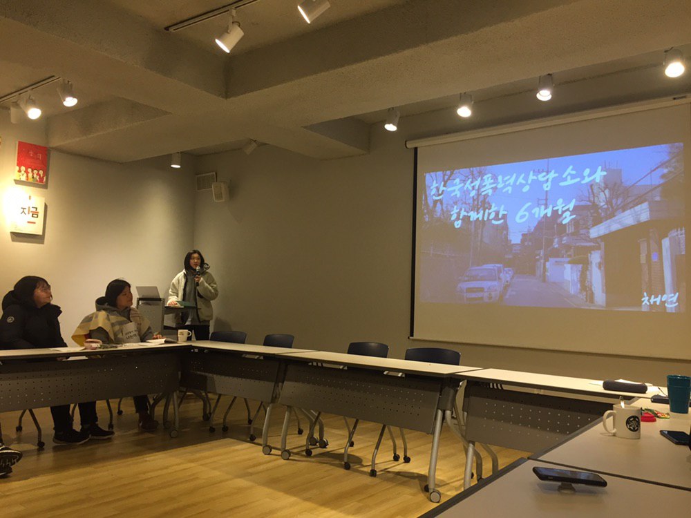 활동가분들과 다 같이 모여 그간의 활동을 정리한 발표와 소감을 나누는 것으로 저의 인턴 활동은 끝이 났습니다. 상담소와 함께했던 매 순간순간들은 배우고 성장했던 순간들로 가득 차 있었습니다. 짧은 시간이었지만 정말 알차게 많은 활동을 했고 빠짐없이 배우고 온몸으로 받아들였던 것 같습니다.
