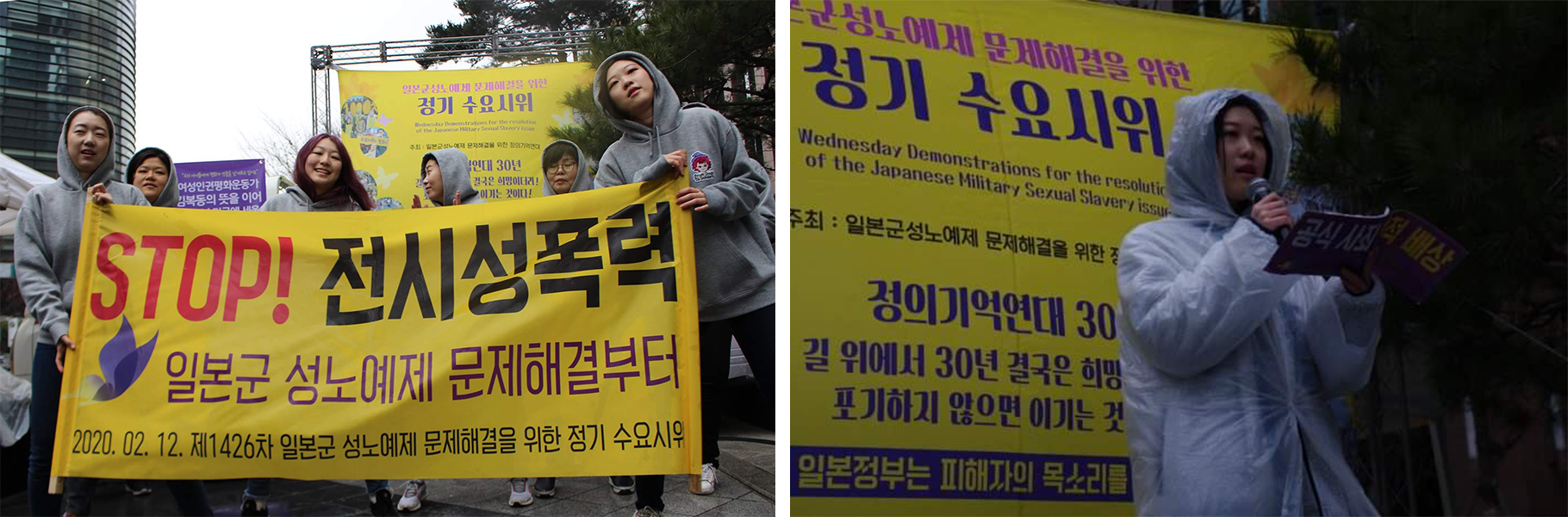 그리고 2월 12일 한국성폭력상담소가 주관하는 제 1426차 일본군 성노예제 문제해결을 위한 수요 시위 기획팀으로서 전반적 준비와 진행을 하기로 했습니다. 이를 위해 전쟁과여성인권박물관을 방문하기도 하고, 제1424차 일본군성노예제 문제해결을 위한 정기 수요시위에 참석하기도 하였습니다.