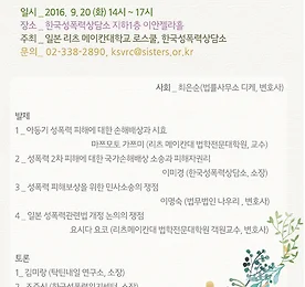 전체 글 썸네일형 리스트형 군형법 제92조의6 (구 제92조의5) 헌법재판소 결정문 평석 [성평등한 사회를 위한 성폭력 판례뒤집기]군형법 제92조의6 (구 제92조의5) 헌법재판소 결정문 평석 -헌법재판소의 제3차 군형법상 ‘추행죄’ 합헌결정 (2016.7.28.)을 중심으로사회: 하루 (한국성폭력상담소 부설연구소 울림 연구원) 발제: 한가람 (희망을만드는법 변호사) 토론: 추지현 (한국성폭력상담소 부설연구소 울림 객원연구원) 잇을 (한국성폭력상담소 성문화운동팀장)일시_2016년 9월 28일 수요일 오후 2시~4시 장소_한국성폭력상담소 이안젤라홀 주최_한국성폭력상담소 후원_한국여성재단 문의_02-338-2890 (감이)사전참가신청 https://goo.gl/Gmqcej 더보기 [한국성폭력상담소 개소 25주면 기념 한·일 세미나] 성폭력 피해 배상을 위한 민사소송의 전망 -한국성폭력상담소 개소 25주면 기념 한·일 세미나- 성폭력 피해 배상을 위한 민사소송의 전망 2016년 9월 한국성폭력상담소 개소 25주년 기념 한·일 세미나가 열렸습니다. 성폭력 피해 배상을 위해 민사소송의 측면에서 한국과 일본의 현황과 전망에 대해 함께 이야기하는 자리였습니다. 이번 세미나는 한국과 일본의 성폭력 피해 배상, 이를 위한 민사소송의 쟁점을 비교하고 더 나은 방안을 제시하는 시간이었습니다. 이번 세미나는 법률사무소 디케의 최은순 변호사가 사회를 맡아 진행했습니다. 일본어 동시통역은 리츠 메이칸대학교 Global Innovation 연구기구 전임연구원이자 김성은 법학박사와 본 상담소 부설 연구소 울림의 김지민 객원연구원이 수고해주셨습니다. 첫 번째 발제로 일본 리츠메이칸대 법학전문대학원의.. 더보기 [자원활동가 모집] 길거리괴롭힘 · 성폭력 · 성희롱 말하기대회 [자원활동가 모집!]길거리괴롭힘 · 성폭력 · 성희롱 말하기대회 오픈라디오 활동시간 : 9/21(수) 14:30~22:00 (7시간30분) 신청기간 : 9/9(금) ~ 9/18(일) 신청하기 : https://goo.gl/forms/6uWoe4ddBIBK8Ayu2 (신청양식에 있는 내용을 꼭 확인해주세요.) 행사보기 : https://www.facebook.com/events/664788203672811/ 주최 : 한국성폭력상담소 문의 : 02-338-2890~2 이 사업은 아름다운재단 2016 변화의시나리오 지원으로 진행됩니다. 로드 중... 더보기 길거리괴롭힘 · 성폭력 · 성희롱 말하기대회 오픈라디오 듣기참여 신청! [듣기참여 신청접수를 시작합니다.] 경험자와 목격자, 피해자와 조력자가 말하는 길거리괴롭힘 · 성폭력 · 성희롱 말하기대회 오픈라디오 “감추고 싶지만 때로는 발설하고 싶은, 무게를 덜어내고도 싶지만 사소한 일만은 아닌, 많은 사람이 겪는 경험인데도 ‘내 문제’로만 여겼던, 같지만 또 다른 우리들의 이야기“ 길거리괴롭힘 · 성폭력 · 성희롱 경험을 광장에서 말하고, 우리들의 음성으로 변화의 물결을 일으킵니다. 일시 2016. 9. 21(수) 19:30~21:30 (120분) 장소 서울 청계광장 주최 한국성폭력상담소 다음 안내사항을 꼭 확인해주세요. * 본 행사는 길거리괴롭힘 · 성폭력 · 성희롱에 대한 에세이 6편의 낭독과 출연자들의 공연으로 꾸며집니다. * 청취자의견을 보내는 텔레그램채널을 당일 현장에서.. 더보기 [한일세미나]개소25주년 기념 한일 세미나 개최 알림 [한일세미나]개소25주년 기념 한일 세미나 개최 알림 [ 성폭력 피해 배상을 위한 민사소송의 전망 ] [ 성폭력 피해 배상을 위한 민사소송의 전망 ] 일시 : 2016.9.20 (화) 14시~17시장소 : 한국성폭력상담소 지하1층 이안젤라홀주최 : 일본 리츠 메이칸대학교 로스쿨, 한국성폭력상담소 사회 : 최은순 (변호사) 발제1_ 아동기 성폭력 피해에 대한 손해배상과 시효 / 마쯔모토 가쯔미 (리츠 메이칸대학교 법학전문대학원, 교수)2_ 성폭력 2차피해에 대한 국가손해배상 소송과 피해자 권리 / 이미경 (한국성폭력상담소, 소장)3_ 성폭력 피해보상을 위한 민사소송의 쟁점 / 이명숙 (법무법인 나우리, 변호사)4_ 일본 성폭력관련법 개정 논의의 쟁점 / 요시다 요코 (리츠 메이칸대학교 법학전문대학원 객원교.. 더보기 [NO 경직! 라운드테이블 – 성교육을 말하다] 후기 후기 2016년 8월 23일 화요일, 한국성폭력상담소에서 ‘No 경직! 라운드테이블 – 성교육을 말하다’라는 주제로 간담회가 열렸습니다. 지난해 교육부의 ‘국가수준의 학교성교육 표준안’이 발표되면서 제대로 된 성교육에 대한 여러 단체와 시민들의 요구가 이어졌습니다. 이번에 열린 간담회는 성교육에 대해 솔직하게 털어놓고 서로 공감을 얻을 수 있는 자리였습니다. 간담회의 진행 순서로는, 김서화(여성주의 저널 일다을 연재), 재재(한국여성의 전화 인권정책국), 치리(청소년 인권행동 아수나로), 최규영 (청량고등학교 보건교사), 박현이(아하!서울시립청소년문화센터), 류민희(공익인권 변호사모임 희망을 만드는 법)의 발표가 있었고, 그 다음으로 전체 토론이 이어졌습니다. 좌담회는 한국성폭력상담소 이안젤라홀에서 진행.. 더보기 개소 25주년 후원의밤에 와주신 모든 분들, 감사합니다 :) 지난 토요일, 27일에는 카우카우 합정점에서 개소 25주년 후원의 밤이 열렸습니다. 오후 2시부터 밤 10시까지 많은 분들이 함께해주셨는데요. 상담소의 지난 25년을 축하하고, 앞으로의 25년을 또 응원하는